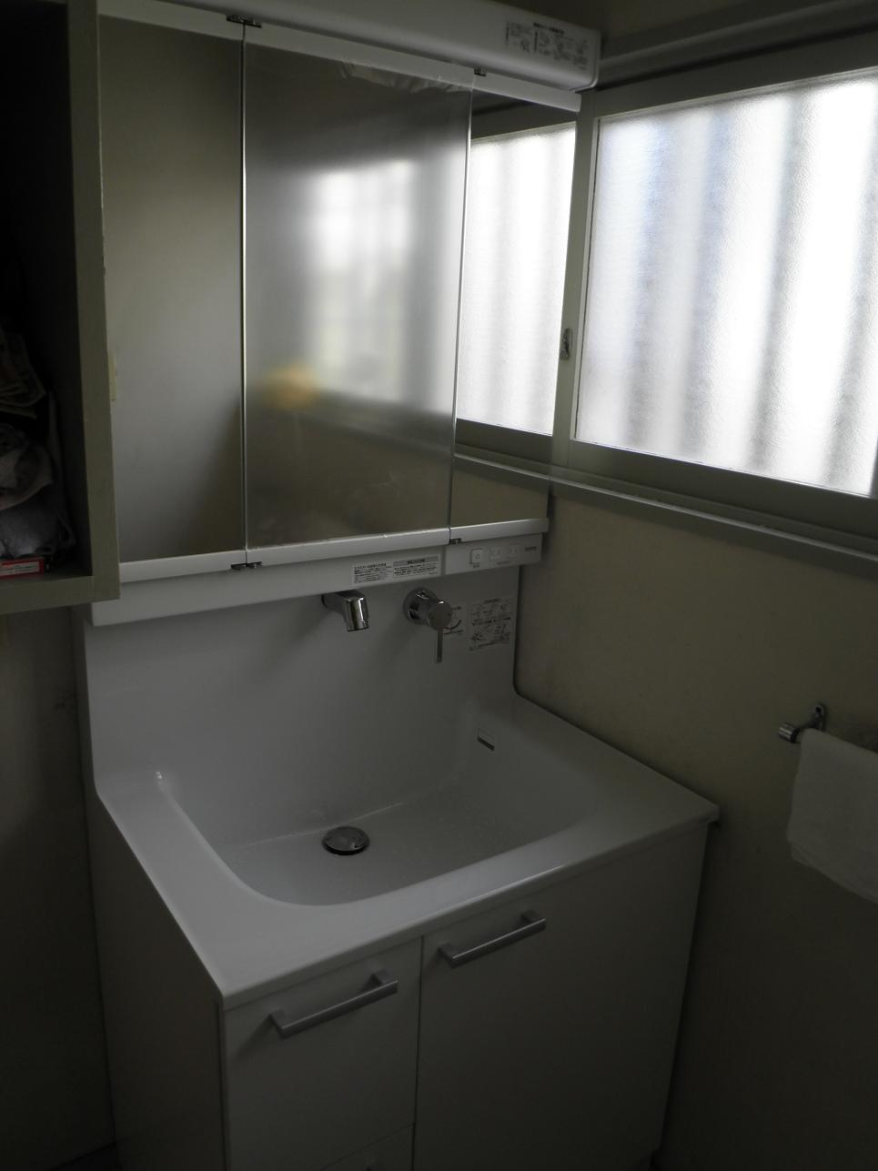 HOME > 施工事例 > 施工事例 東灘区 T様邸洗面台リフォーム 更新日:2018年11月16日 現在お使いの洗面化粧台が古くなり漏水するとの事で、新しい洗面化粧台(TOTOオクターブ)に取替させていただきました。 同時に、床のクッションフロアーも新しく張替え致しました。 今までよりもたくさんの収納が出来るようになり、フロアーも張替えたことで洗面所が明るくなったと喜んで頂けました。 施工後 担当 清水 Twitter シェア Google+ Pocket B!はてブ LINE -施工事例